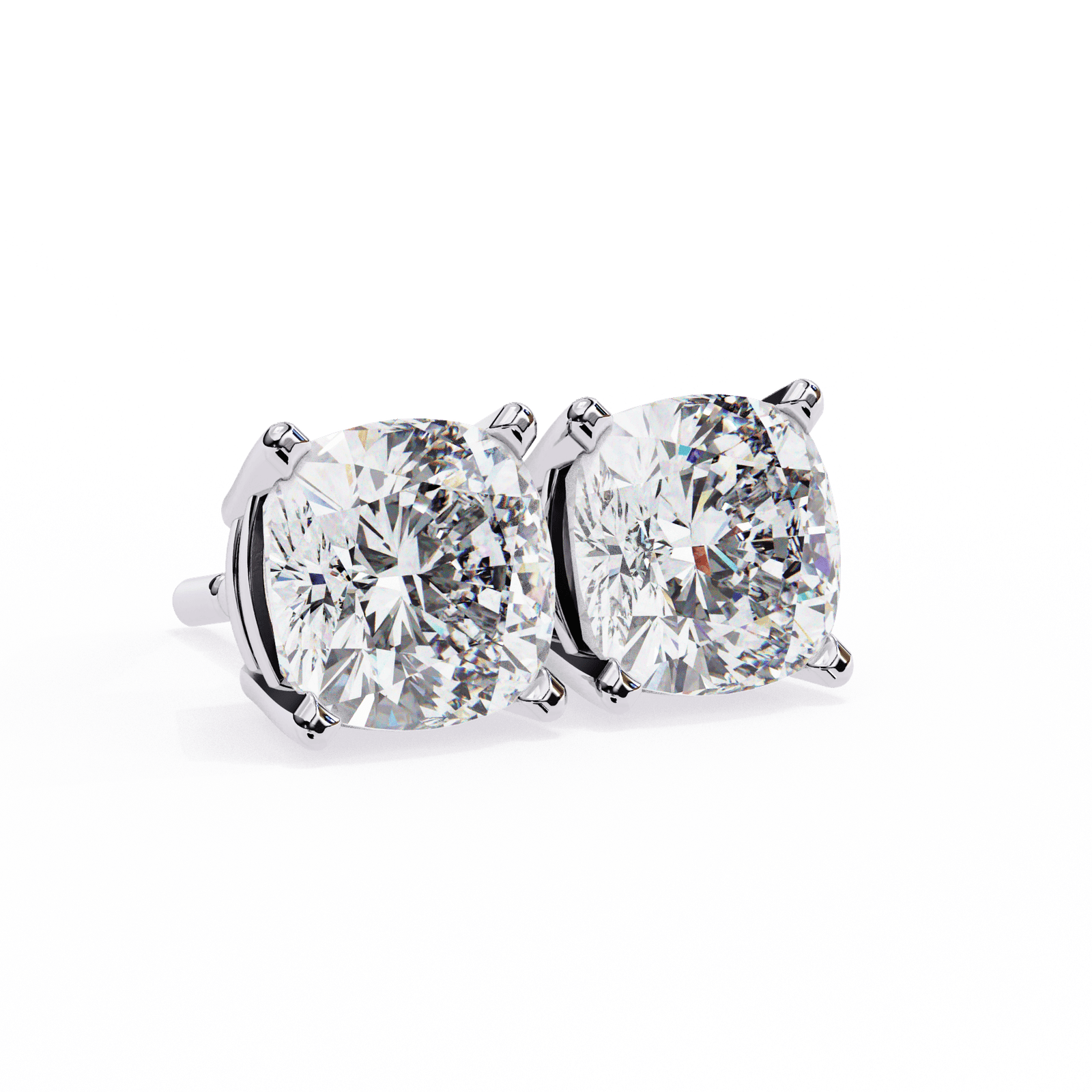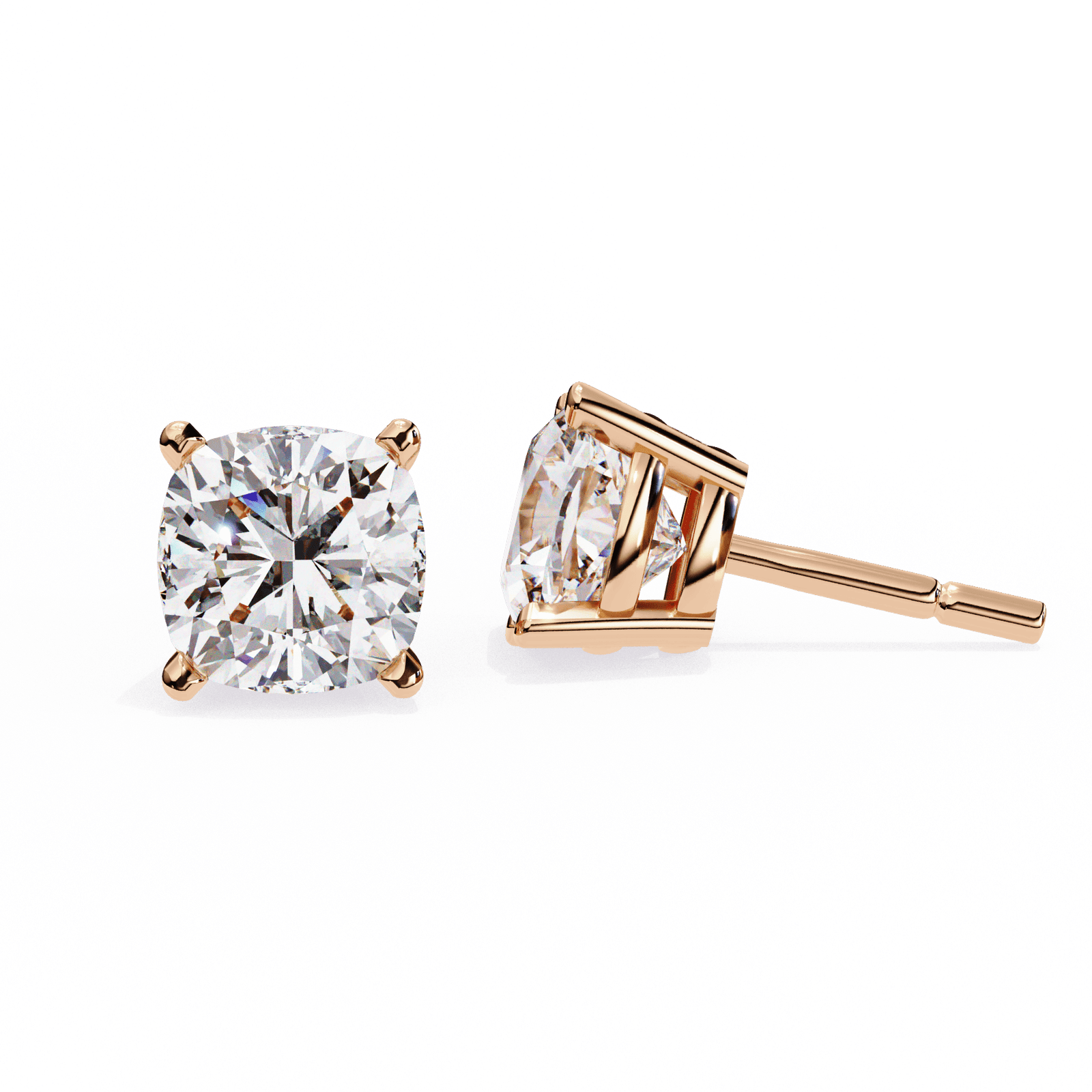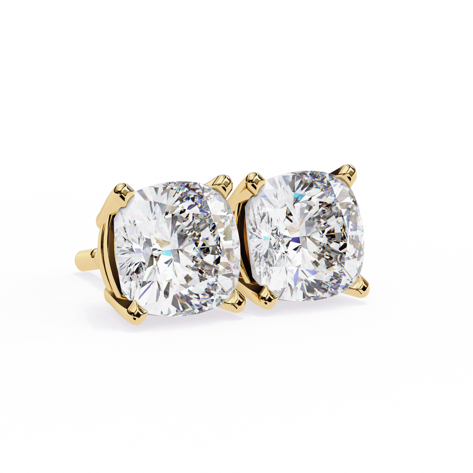 Cushion Cut Diamond Solitaire Stud Earrings in 18K Gold