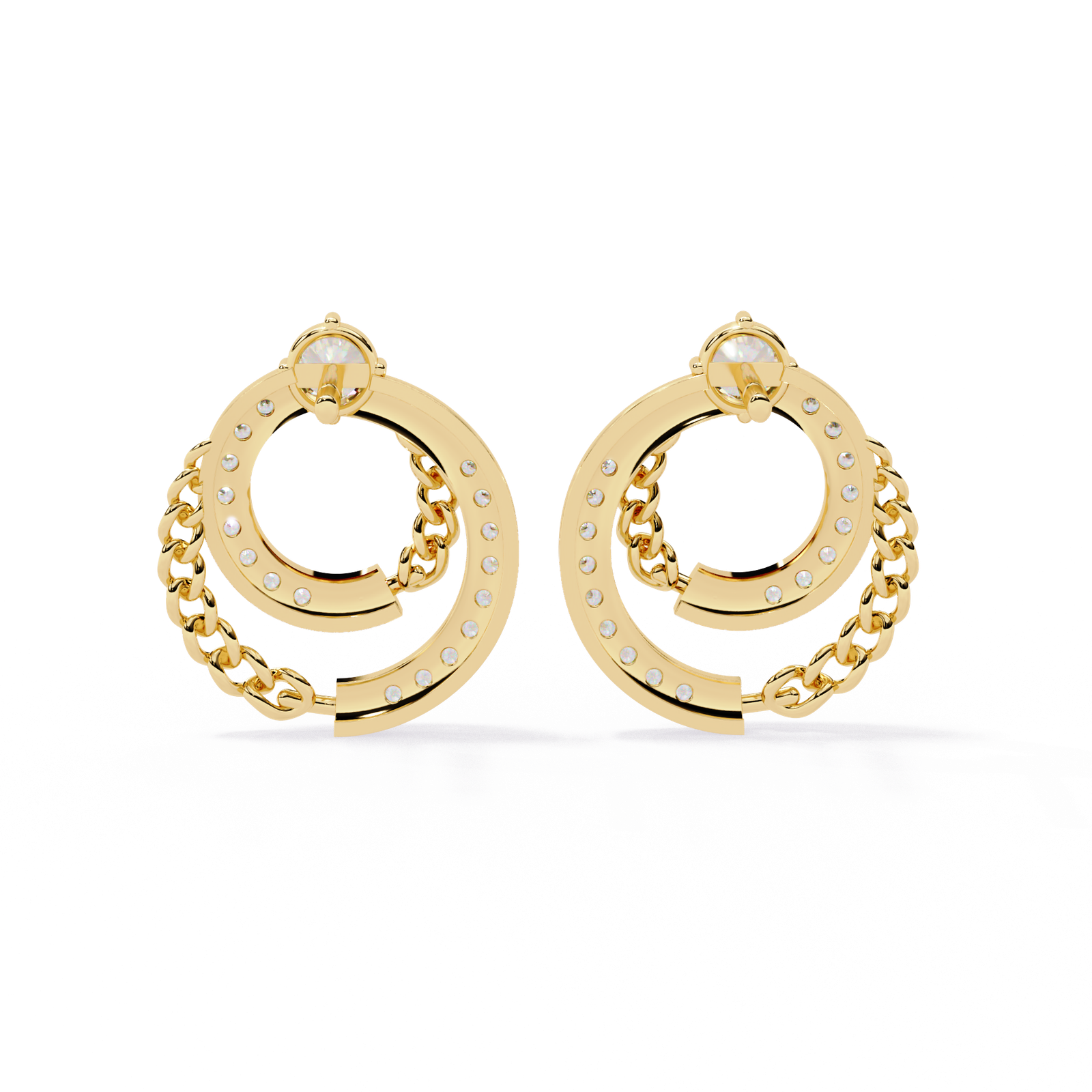 Add a modern twist to your jewelry collection with these Diamond Chain Link Hoop Earrings, designed in luxurious gold or rose gold. Weighing 1.73 grams and featuring 0.46 carats of dazzling diamonds, these earrings blend sparkling hoops with a delicate chain design for a bold yet elegant look. Perfect for festive occasions or stylish every day wear, they bring effortless sophistication and contemporary charm to any outfit.