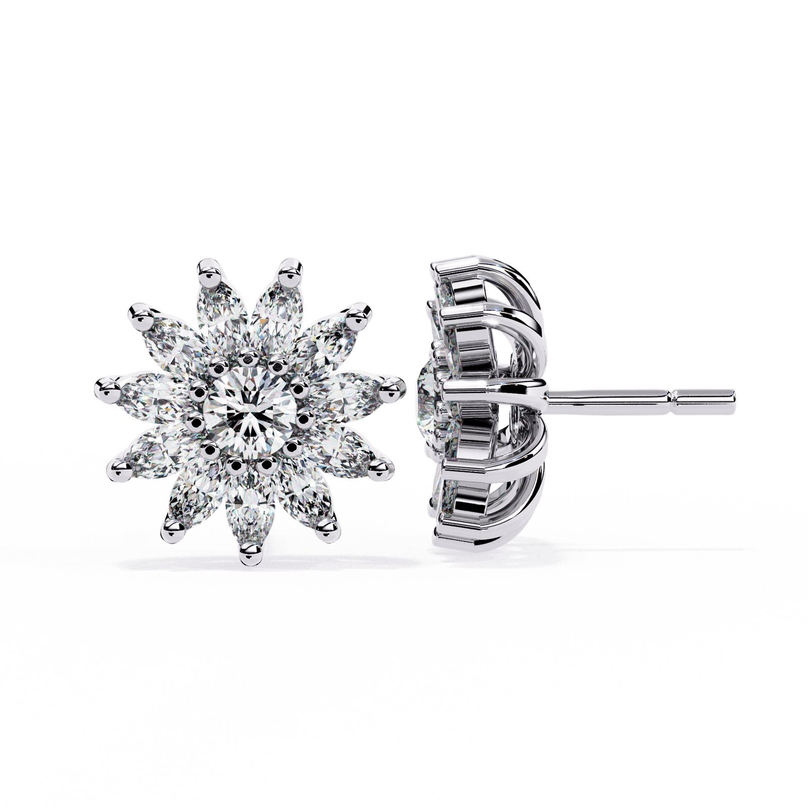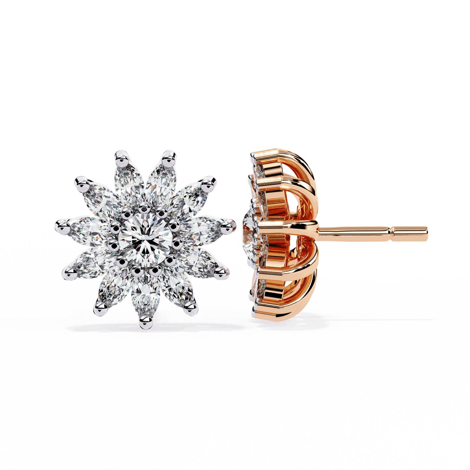 Introducing the Diamond Celestial Bloom earrings  — a breathtaking floral explosion of diamonds. Crafted in gold or rose gold, these stunning studs weigh 5.37 grams and dazzle with 1.31 carats of brilliant-cut diamonds. Each petal is meticulously placed, capturing light from every angle, making them perfect for grand celebrations and timeless elegance.