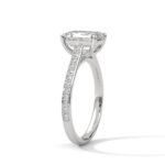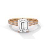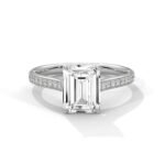 Elegance meets precision in this stunning emerald cut solitaire ring. Featuring a 2.10 carat center diamond in a sleek 4-prong setting, the ring is enhanced with a fine pavé band of round diamonds that adds shimmer from every angle. The wide base provides extra durability, while the sharp geometric symmetry of the emerald cut brings out exceptional brilliance and clarity.