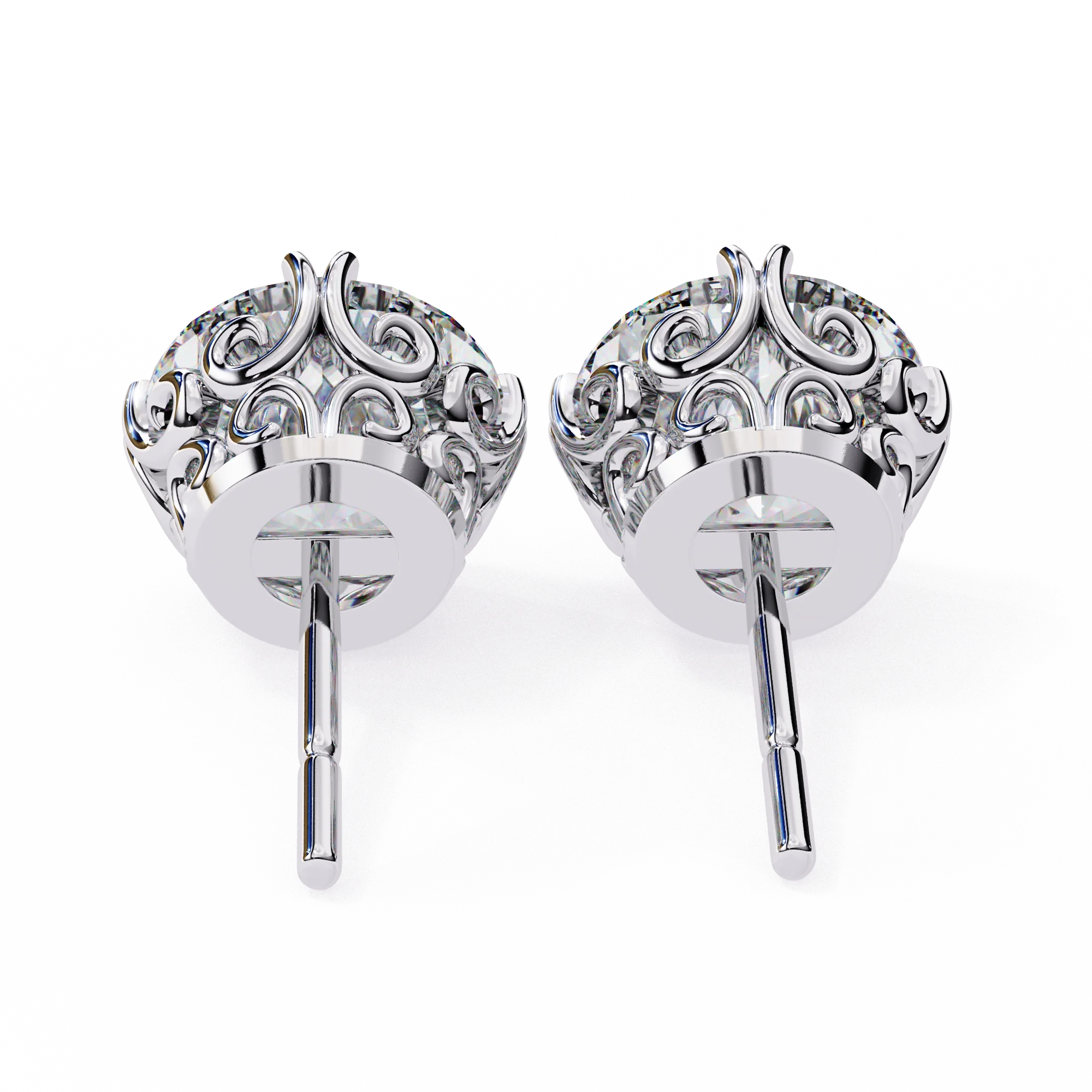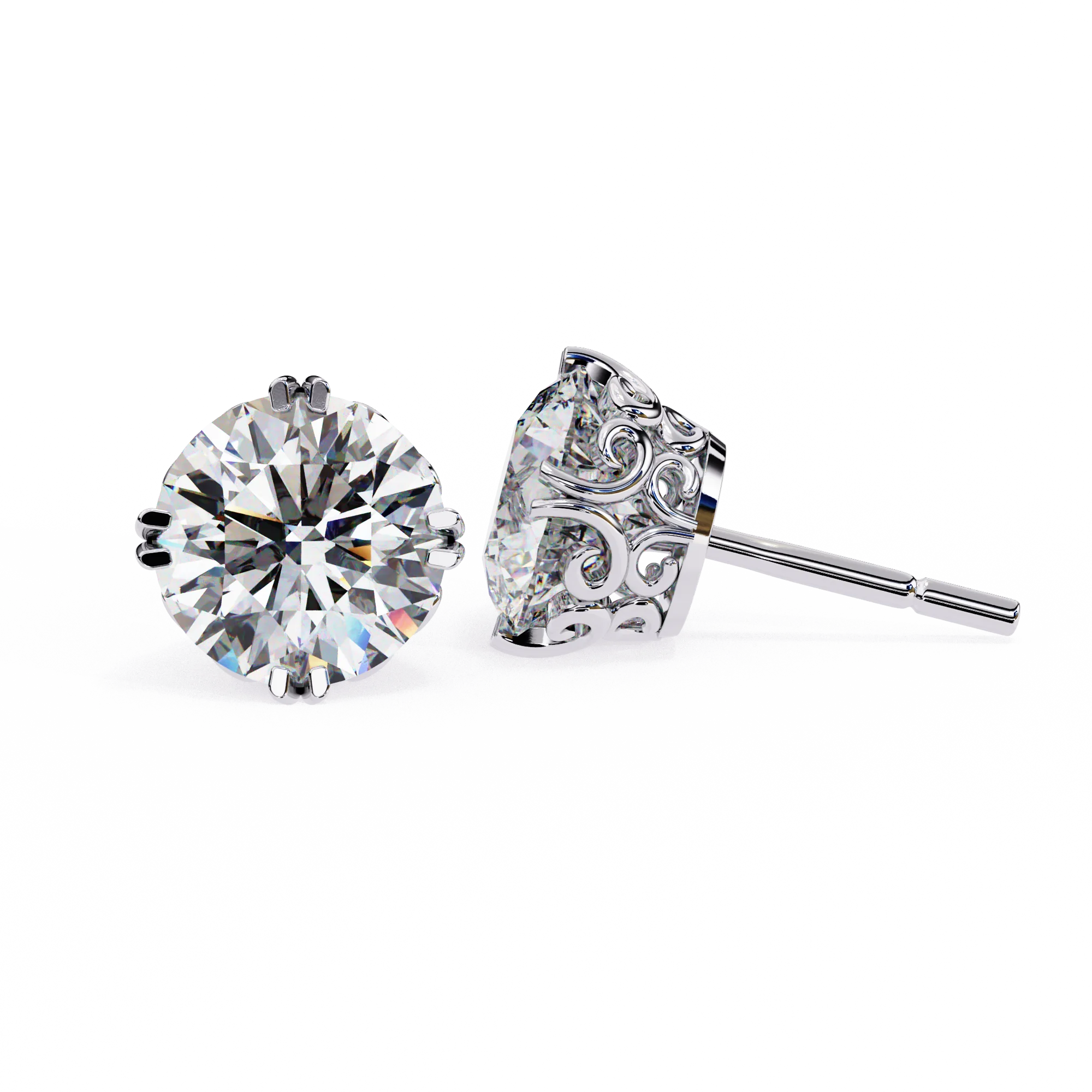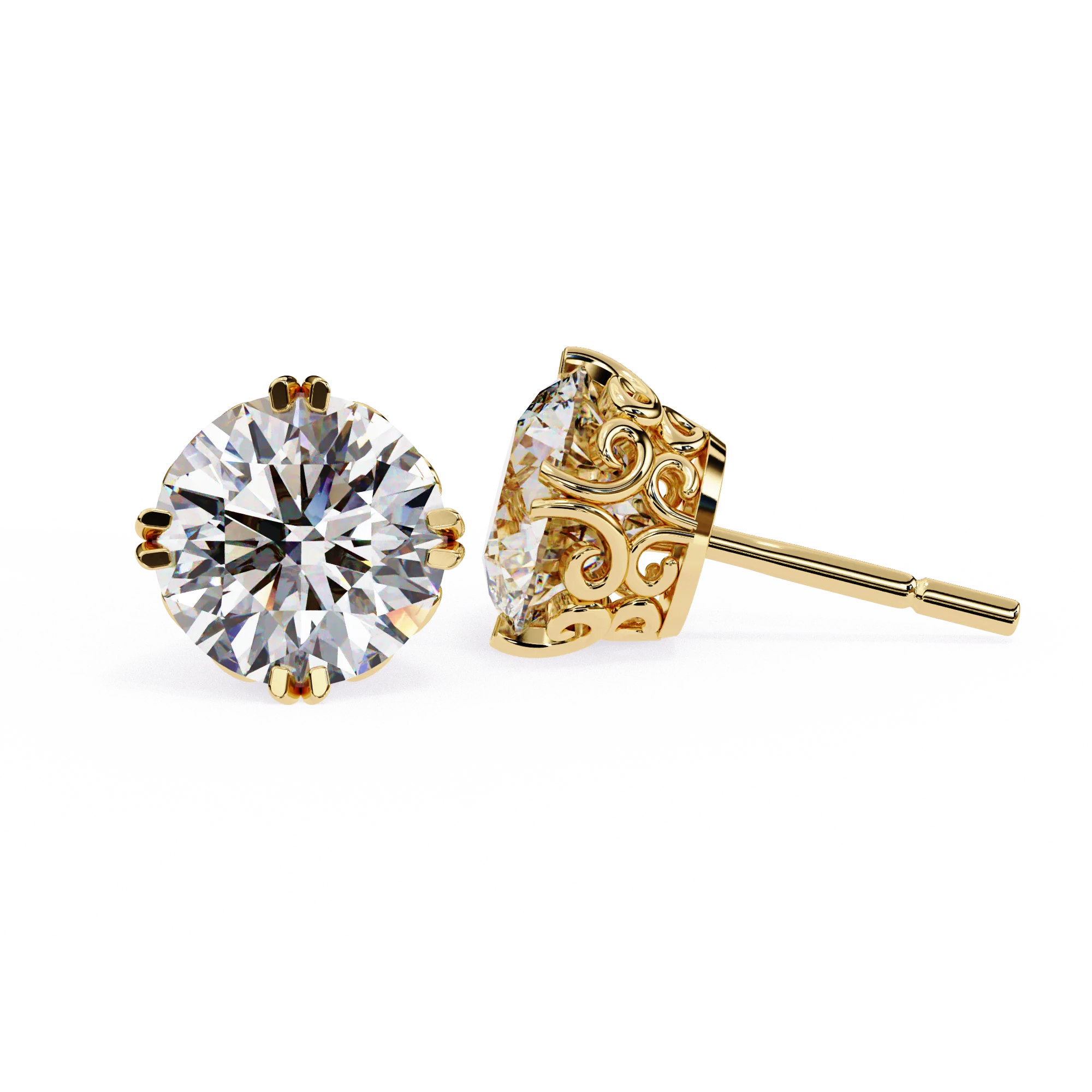 Elegantly crafted with intricate floral motifs and claw prongs, these earrings bring a royal charm to your everyday style. Featuring two 7.00 mm round-cut diamonds totaling 2.57 carats, each stone is securely held in ornate floral prong settings. Crafted in 0.99 grams of 18K gold, these studs are lightweight yet impactful — a perfect blend of grace and grandeur.