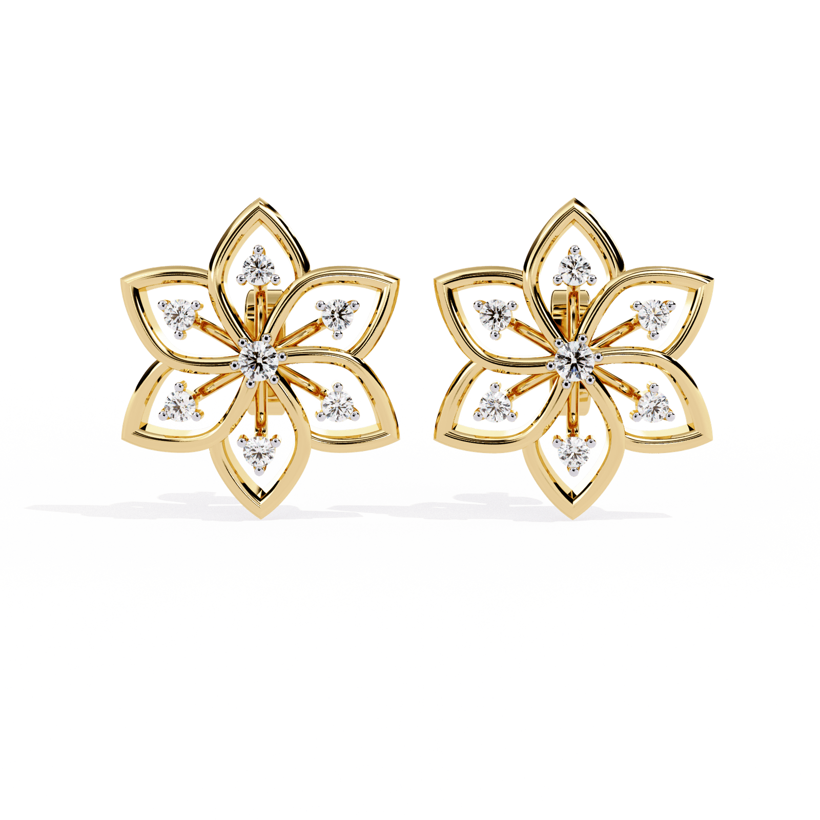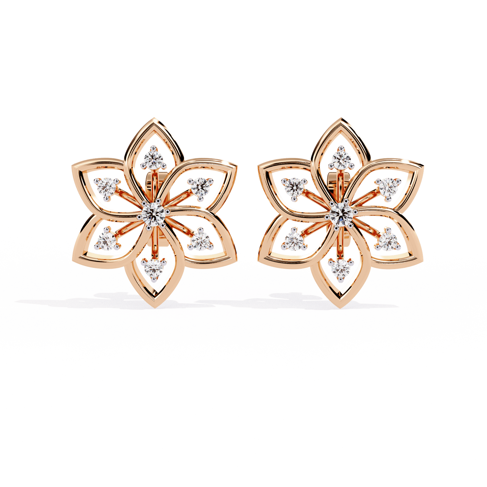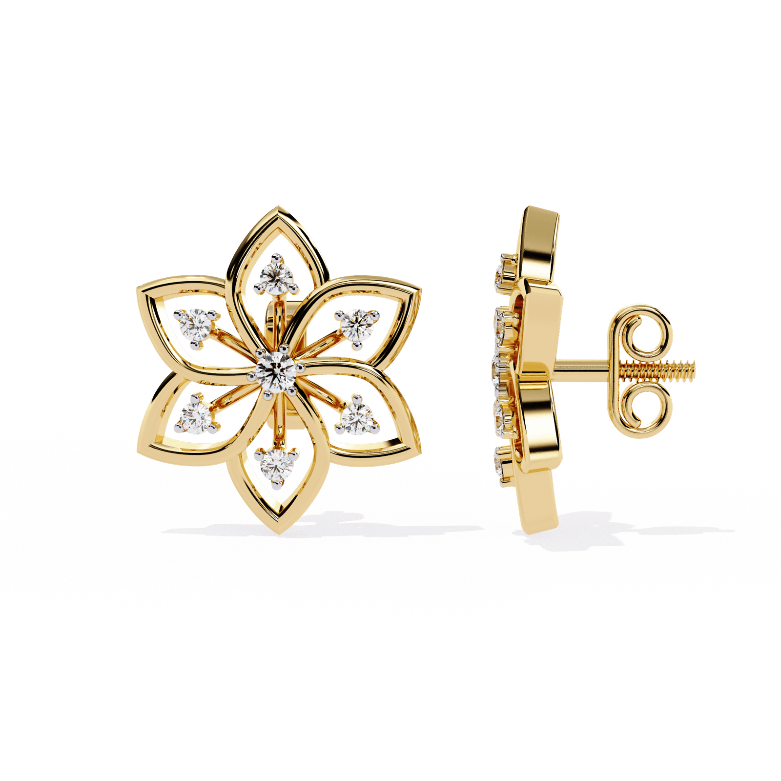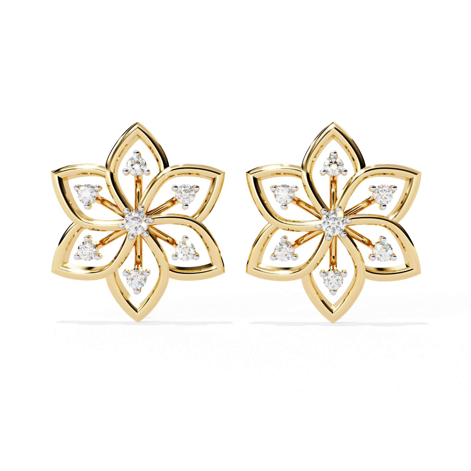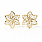 Inspired by the delicate beauty of nature, our Floral Radiance Diamond Studs feature a six-petal floral design accented with 0.10 carats of brilliant-cut diamonds. With a total weight of 2.25 grams, this elegant piece adds timeless charm to your collection. Available in gold, rose gold, and platinum, it’s a perfect blend of grace and sparkle for any occasion.