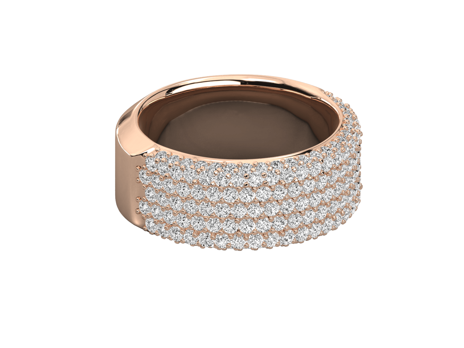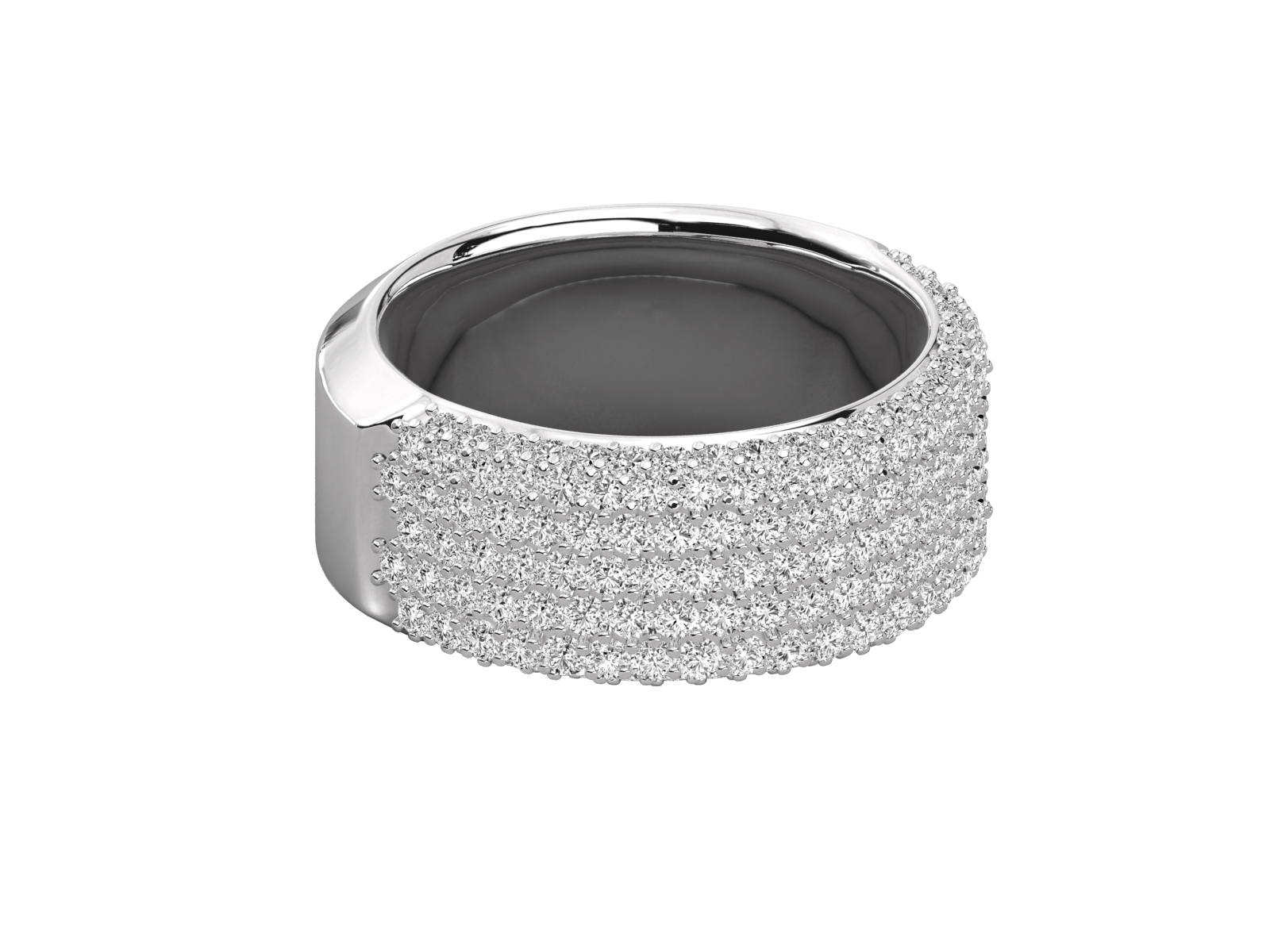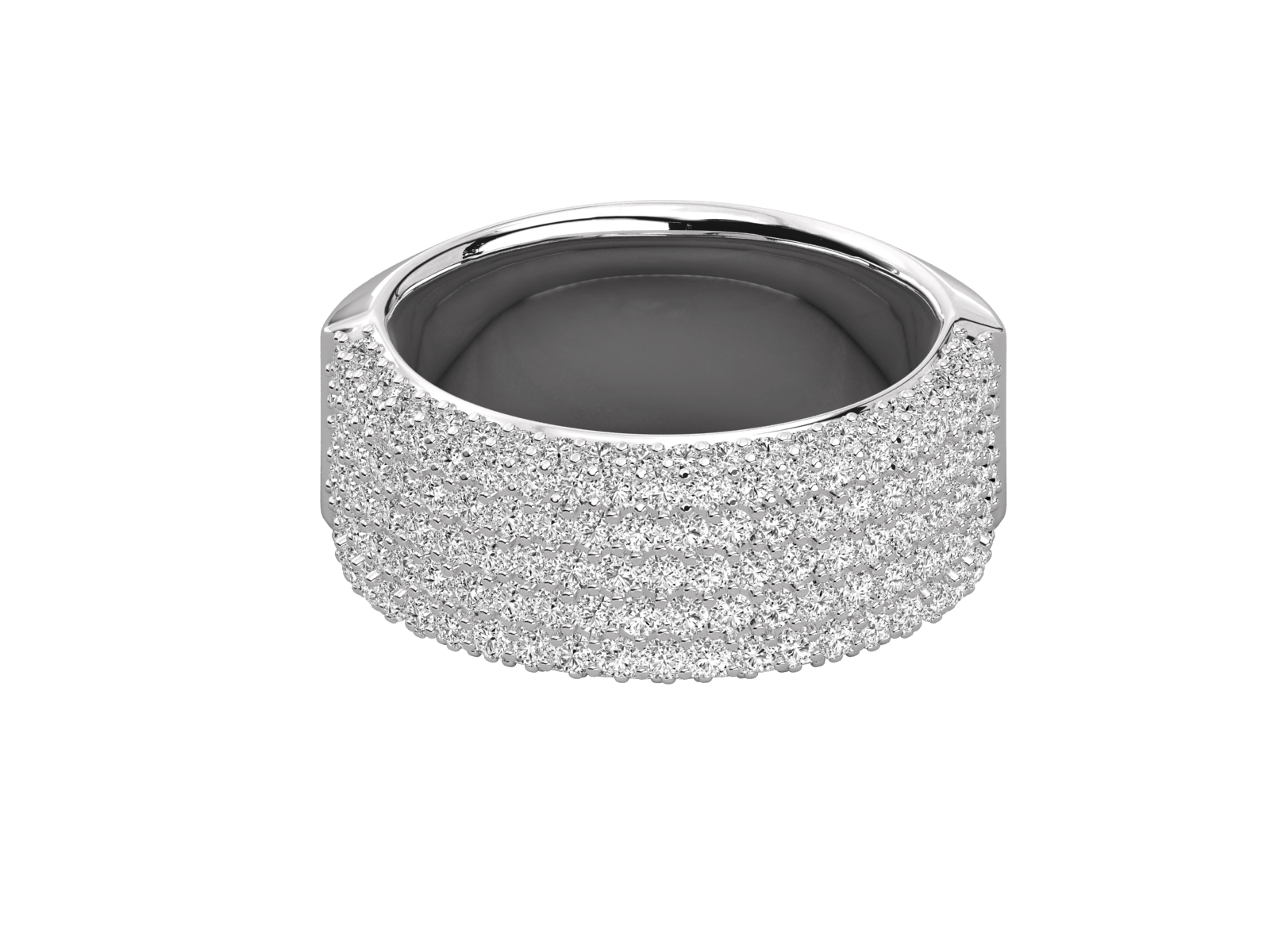Bold and breathtaking, this Grand Double-Row Diamond Band features a brilliant combination of 1.93 carats of round diamonds set in a wide, structured silhouette. Designed for impact, this luxurious ring showcases meticulous craftsmanship and extraordinary sparkle — perfect for those who love to stand out.