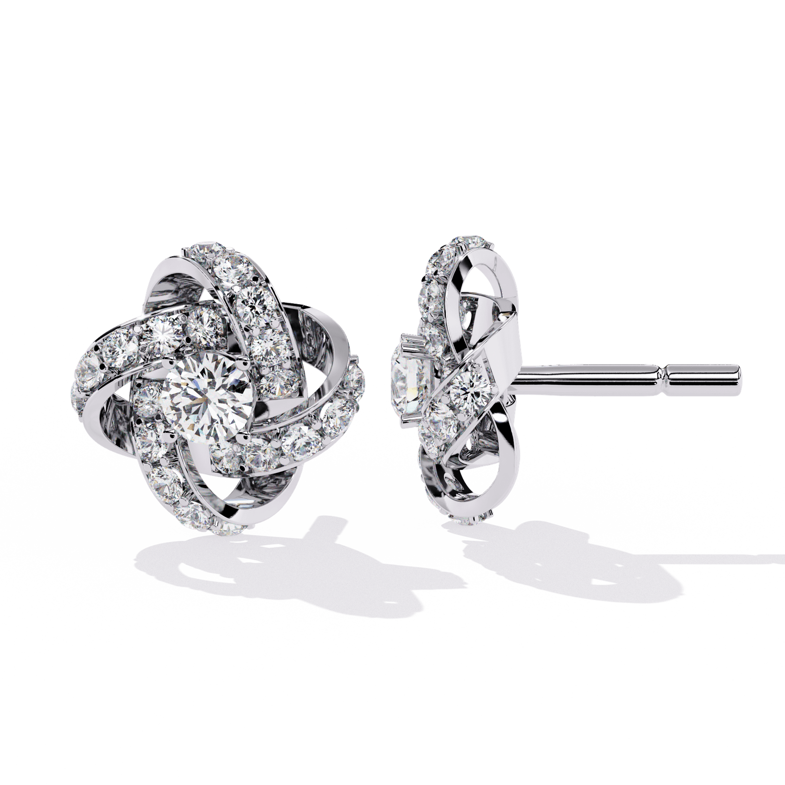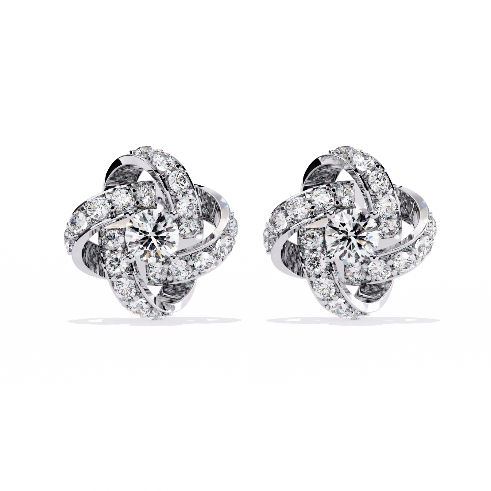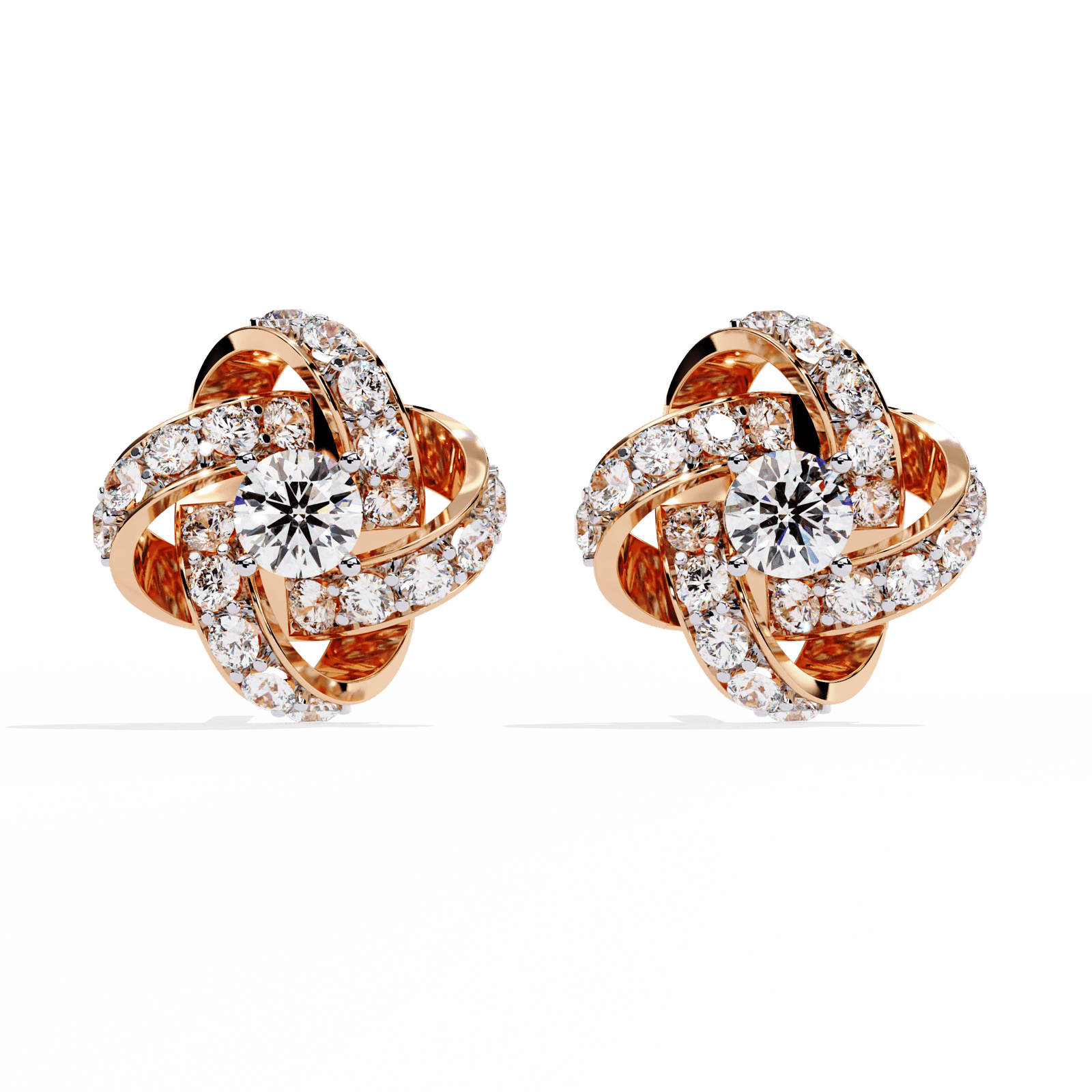 Radiating opulence and timeless grace, the Celestial Knot earrings embody the elegance of royal legacy with a modern twist. Weighing 3.15 grams and encrusted with 0.88 carats of brilliant diamonds, the intricate interwoven loops—available in gold or rose gold—symbolize eternal beauty and refined sophistication. With every turn, they whisper tales of regal romance, making them a crown jewel for those who reign in style.