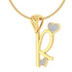 The “R for Radiant” pendant combines graceful design with a touch of charm through its dual heart-shaped diamond clusters — perfect for those whose presence lights up every room.