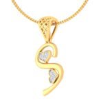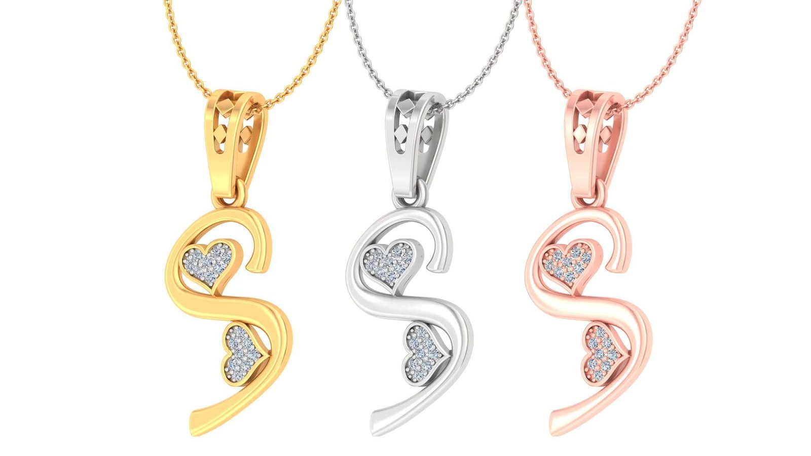 The “S for Serene” pendant captures grace and calm in its flowing curves, enhanced by two diamond-studded hearts — a subtle yet striking symbol of elegance and love.